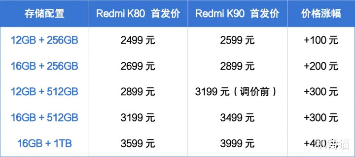 Redmi K90系列临时调价300元